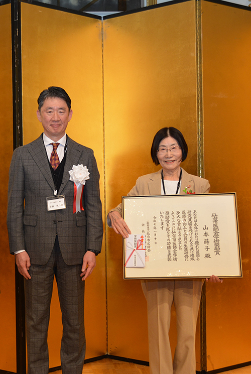 令和7年1月仙台市医師会より当法人理事長山本蒔子が学術奨励賞を受賞いたしました。