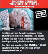 わが国(右)では「喫煙は、あなたにとって脳卒中の危険性を高めます。疫学的な推計によると、喫煙者は脳卒中により死亡する危険性が非喫煙者に比べて約1.7倍高くなります。」厚生労働省のホームページに掲載されています。一方、カナダとオーストラリアの画像警告表示には視認性が高く、タバコ使用に健康被害の危険性が明確に伝達でき、喫煙の動機をより強く引き起こす機会となります。わが国も国際条約を遵守して、国民の健康を守る措置を早急かつ着実に実行に移すべきです。