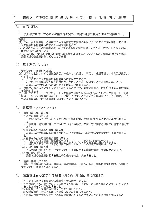 資料2.兵庫県受動喫煙の防止等に関する条例の概要