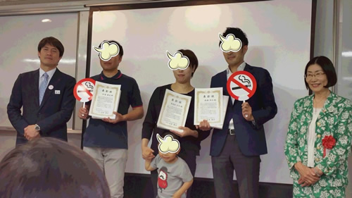 藤崎・禁煙福袋で禁煙された方への表彰状授与 中央3名様