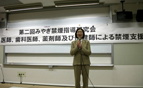 禁煙みやぎでは、地域における禁煙指導や禁煙治療の普及のために、第一回みやぎ禁煙指導研究会を昨年開催致しました。今年も第二回みやぎ禁煙指導研究会を会員の皆様へのご案内のように、11月30日に開催しました。宮城県医師会や宮城県薬剤師会の会報にもお知らせを掲載させていただきました。昨年同様に、医師、歯科医師、薬剤師、看護師および保健師の多職種の皆様にご講演をお願いしました。今回の参加者は60名で、昨年よりも少し増えました。