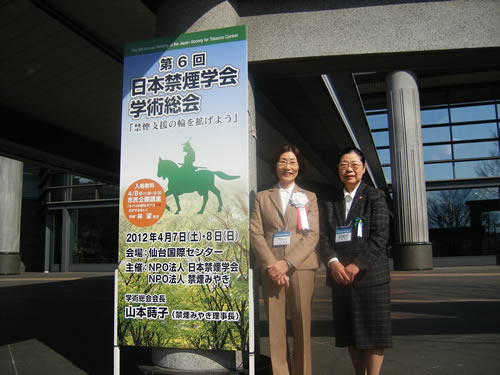 第6回日本禁煙学会学術総会は4月7日(土)と8日(日)に宮城県仙台市の仙台国際センターにおいて開催されました。この学術総会は当初は2011年の10月1日と2日に開催を予定しておりましたが、2011年3月11日の東日本大震災によって延期を余儀なくされました。本来は次の年の開催は出来なのですが、日本禁煙学会の理事長はじめ会員の皆様のご理解とご支援にとって、開催することが出来ました。
